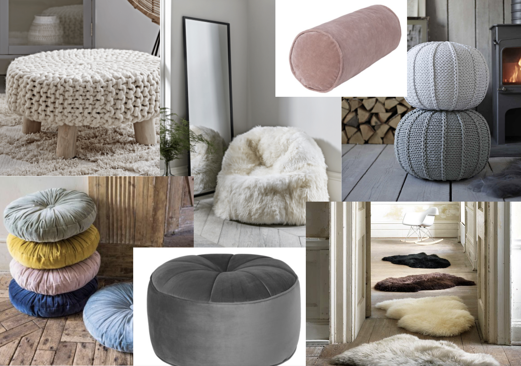 Keeping to a colour palette of neutral and natural tones will instantly create a feeling of calm. Adding a variety of textures such as cable knit, sheepskin, velvet and faux fur offers a soft and tactile sumptuous feeling. Think of adding these textures with footstools, cushions and beanbags, - just make sure that there are enough to go round as your family are sure to have their favourites!