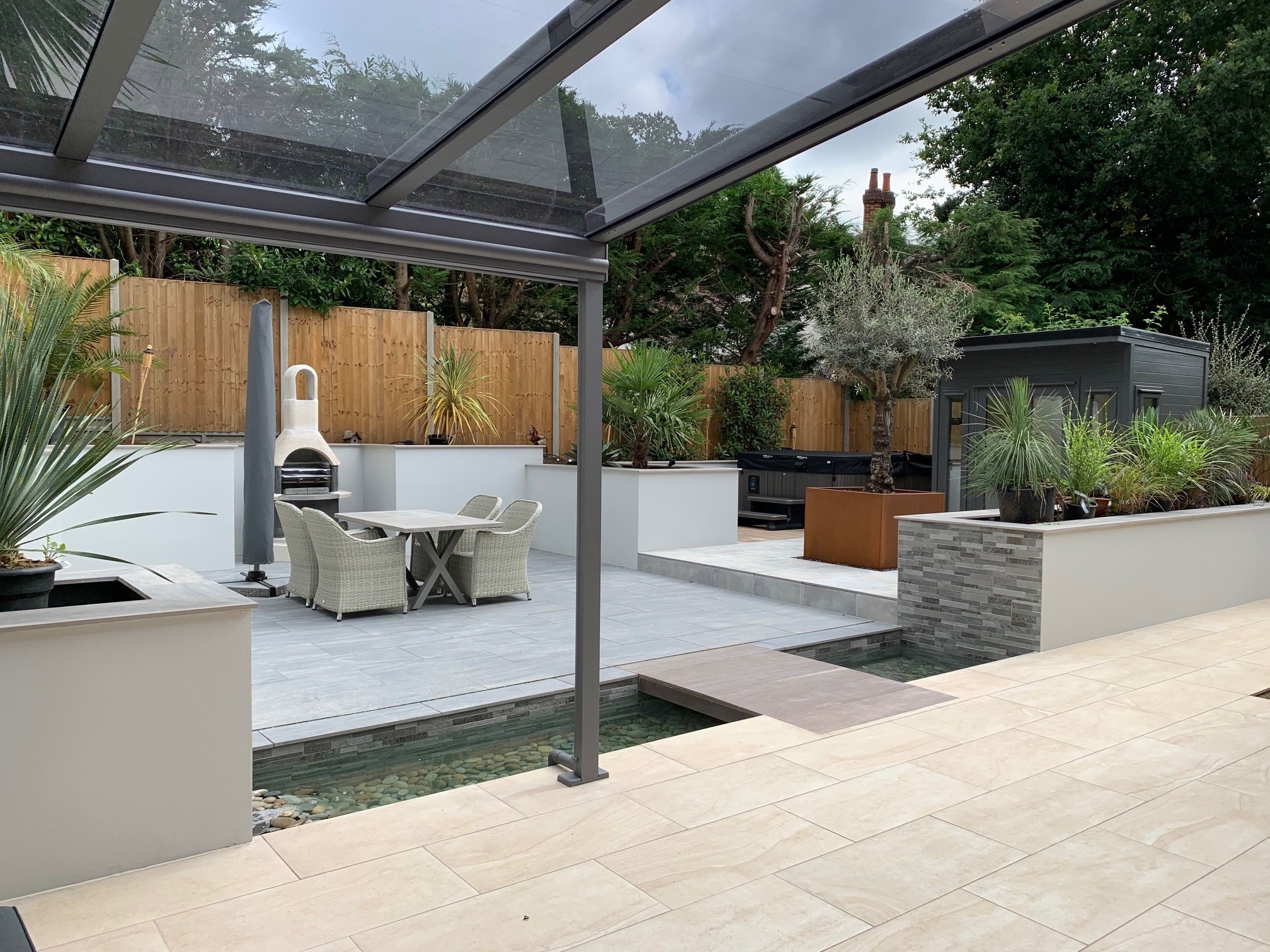 A super relaxing feature for your garden is the hot tub which is having a resurgence in popularity. Whilst it comes with its own set of considerations; safe access, drying facilities, drinks table whether it's recessed in the ground or sits above, it may be something you wish to incorporate within your design.