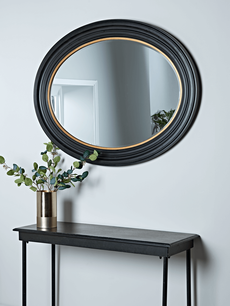 If you are looking for a more classic or traditional finish think of using an elliptical mirror with a painted finish such as this one from Cox and Cox